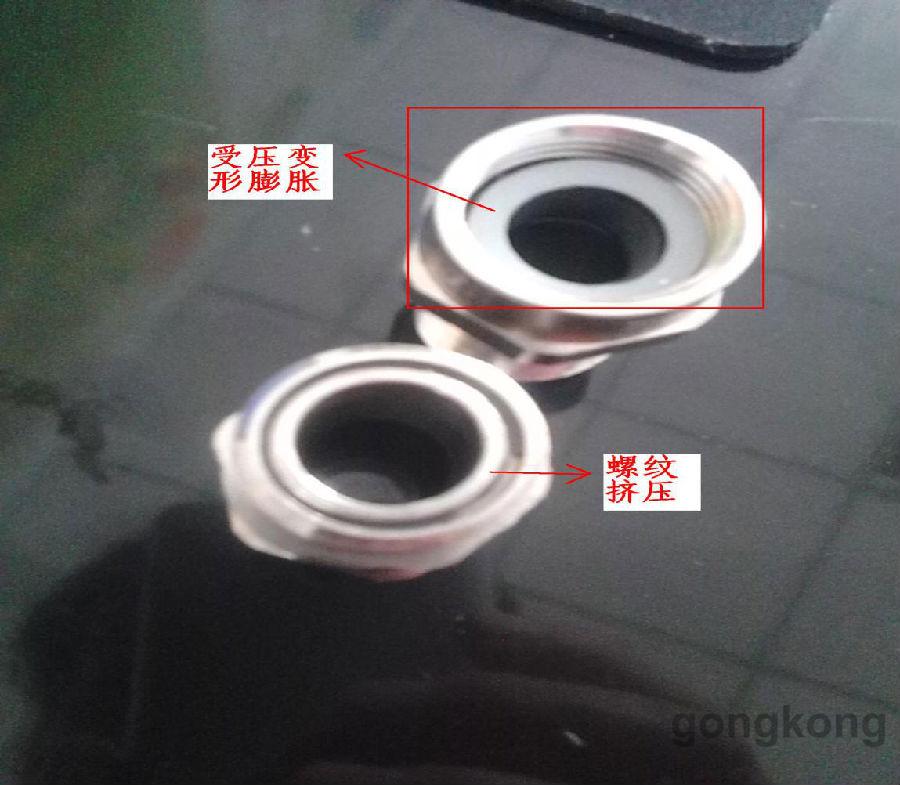 cmp防爆格兰和hawke防爆格兰分为两个部分,两部分之间的锥形螺纹拧紧挤压是格兰密封工作的机理。两部分之间的接口如下图所示: