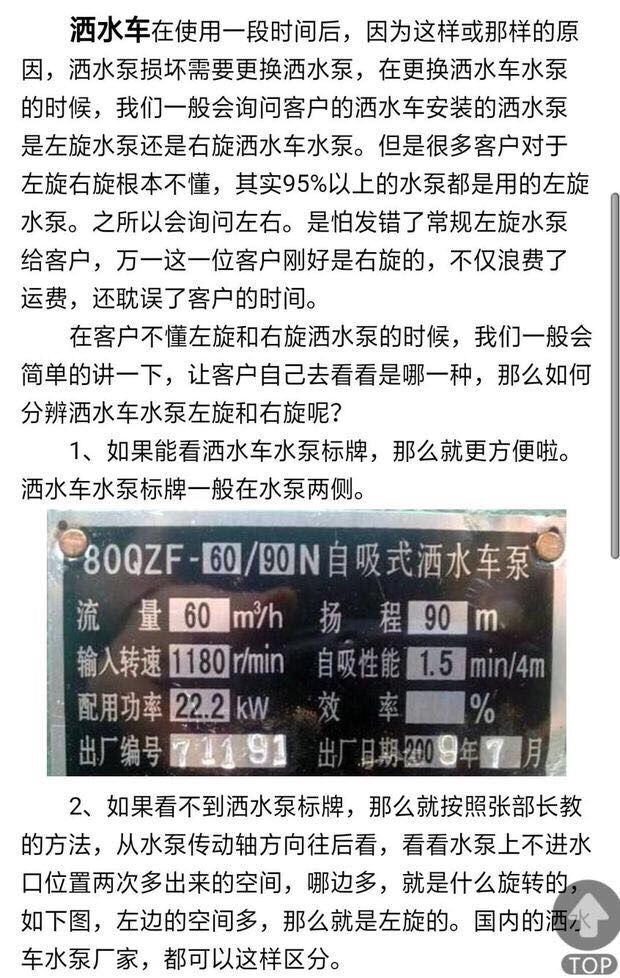 洒水车自吸洒水泵常规分为两种型号:一种是老款型号65qz40/45现在改进为65qz40/50自吸式离心泵安装尺寸不变请新老用户放心购买安装,专用于1到8吨位的洒水车。另一种是80qz60/90自吸洒水泵 专用于8吨以上的洒水车,请客户根据自己的车型来选择适合自己洒水车的水泵。