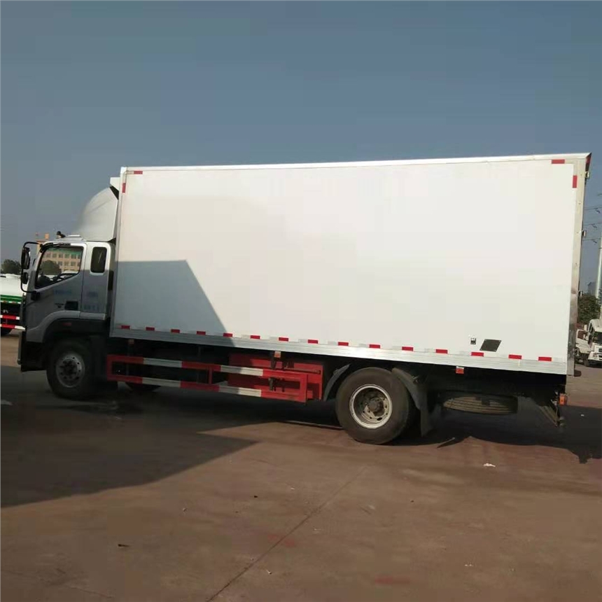 冷藏车厢体采用先进木质工艺,断桥隔热技术,箱板是有镀锌骨架加上环保水木板用螺丝链接,