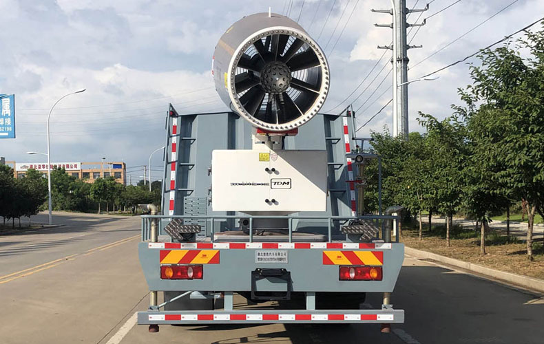 耗水量少,覆盖面广当雾滴从喷嘴中喷出后在喷雾区域被高速高压气流进一步破碎,并使雾滴的速度逐渐增加,提高了雾化程度,雾化一般可达到约50-150μ m 直径大小的雾滴。配套动力灵活,既可用三相380v的市电,也可配套发电机组供电。