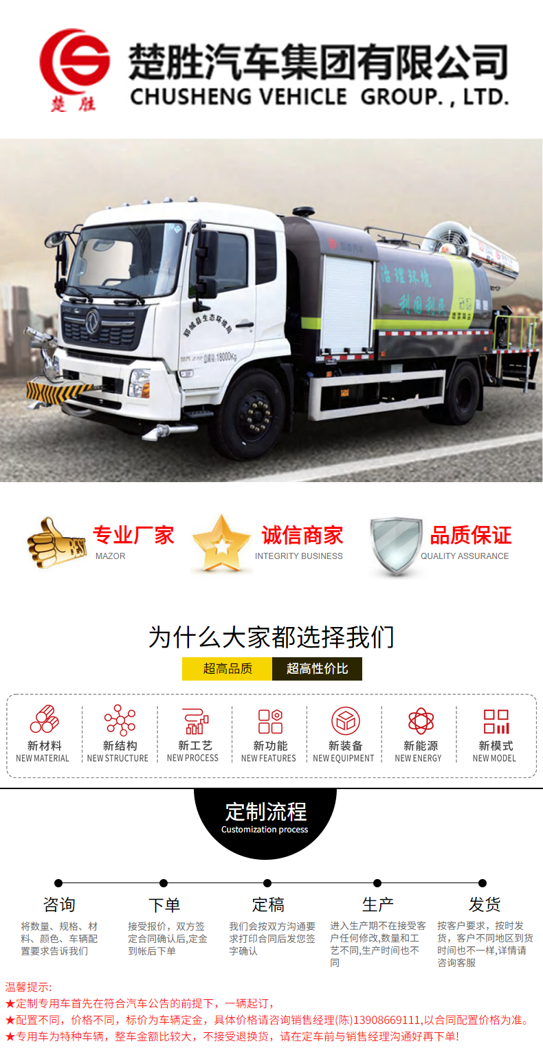 其它1、该车主要用于城市街道的喷雾抑尘,主要专用装置为喷雾总成。罐体有效容积:14.6立方米,罐体外形尺寸(长×宽×高)(mm):4360×2400×1700,前伸量:600mm,后伸量:700mm。2、侧防护材料为铝合金,螺栓连接;后防护材料为q235,截面尺寸(mm)140×60mm,下边缘离地高度460mm。仅采用4350 1350mm轴距。3、随底盘选装驾驶室,选装前部后部灯具,选装后处理外形。abs型号/生产厂家:3631010-c2000/东科克诺尔商用车制动系统(十堰)有限公司,abs 8/东科克诺尔商用车制动系统(十堰)有限公司,4460046450/威伯科汽车控制系统(中国)有限公司。