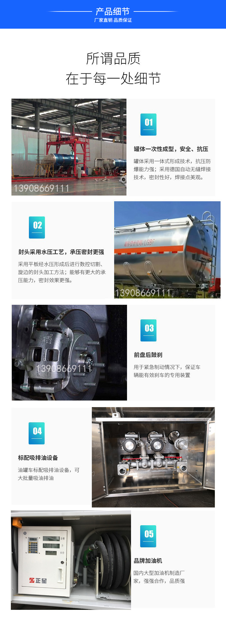 5、更加大方外观;罐体外观为方圆形结构,配备工具箱,铝合金折叠护栏,使整车外观更加简洁、大方。