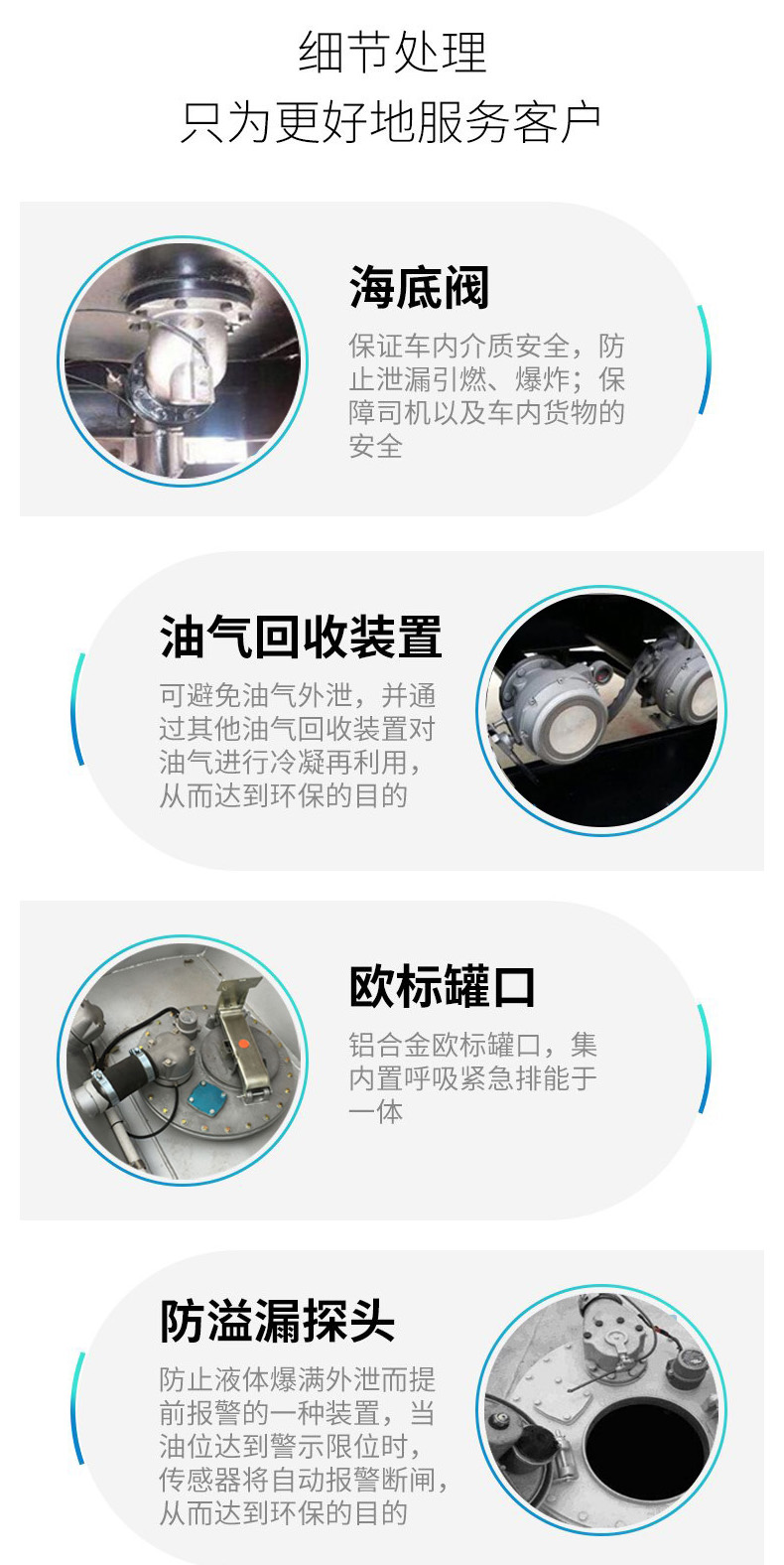 1、产品安全稳定。罐车采用适应性加强设计,有效保证罐车的使用安全性,减少使用过程中的质量问题。