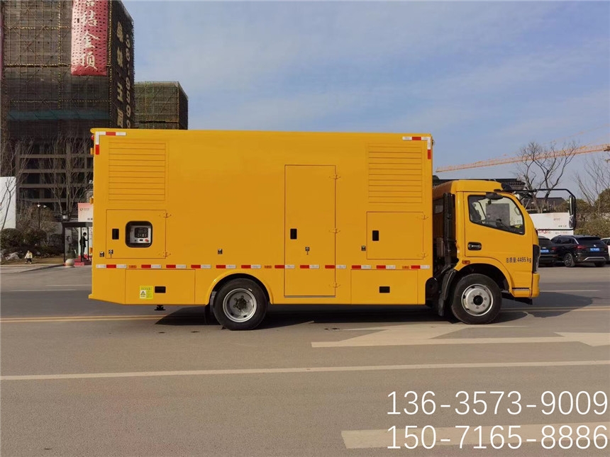 电源车的动力电缆选用yc 系列重型橡套软电缆, 长度一般为30 m, 也可根据需要配到100 m, 以满足各种特殊应用场合应急供电的需要。收放电缆可选用电动或手动控制。