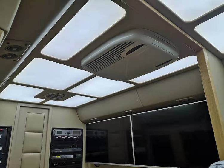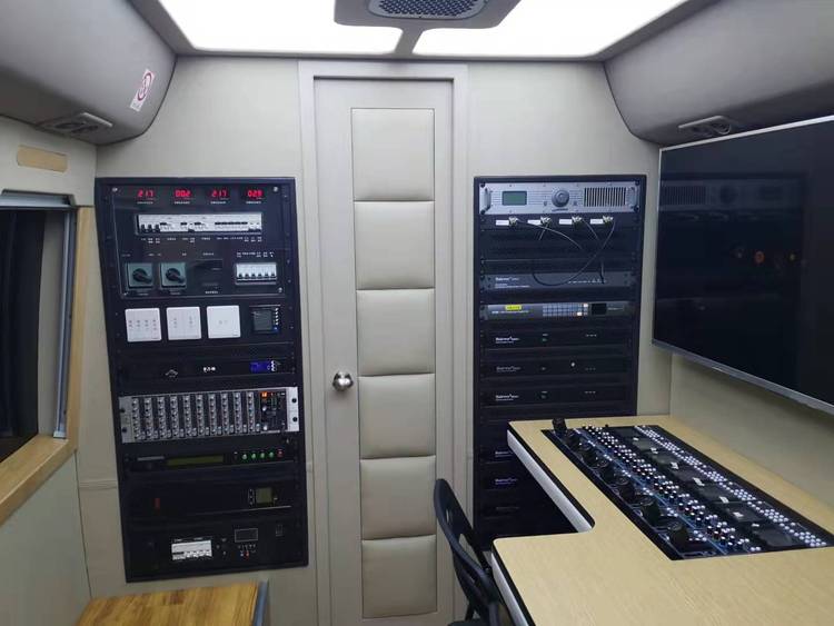 车体底盘采用一类底盘(丰田凯斯特柯底盘的基础上改装车体内部,并加装相应的设备而成。整车主要组成设备包括底盘、电源设备、音视频设备、照明系统、平衡支撑系统、空调、接地系统、控制系统等部分。