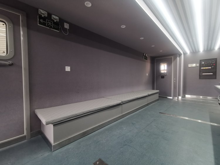 我单位生产的clq5160xds转播车采用重汽汕德卡底盘,带后空气悬挂,主驾带气囊,无惧颠簸路段,驾驶舒适度极佳。底盘采用大轴距5800,整车长度达到了11米,内部空间更大,播控人员操作更舒适,整车采用一字型布局,三区半隔断,沟通性强且不互相干扰.