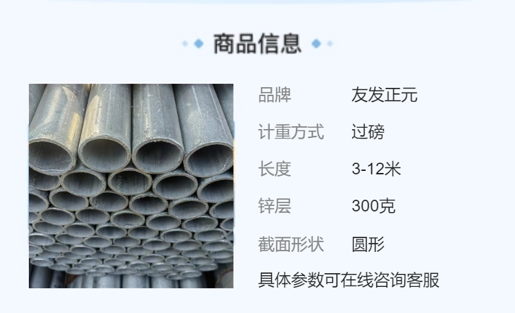 我想了解:《友发正元热镀锌钢管q235b内外壁镀锌圆管dn15dn20dn32dn40dn50》的详细信息.请商家尽快与我联系。