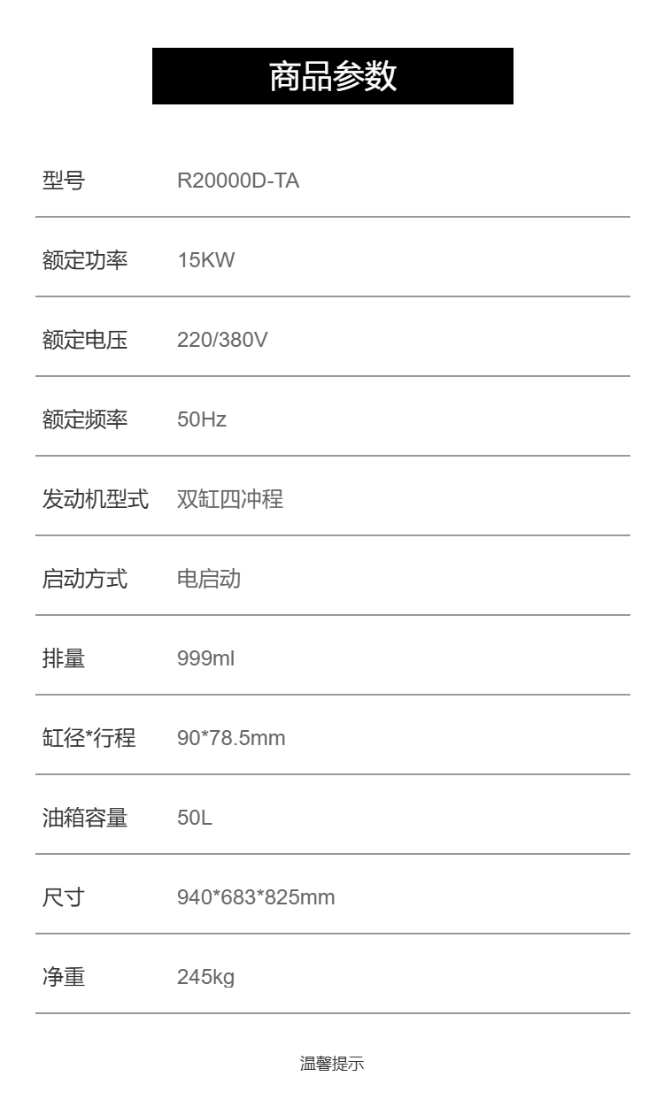 产品参数