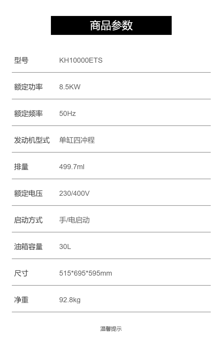 | 机组型号 | kh10000ets | ||