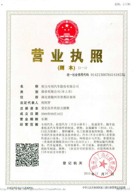 公司名称:程力专用汽车股份有限公司