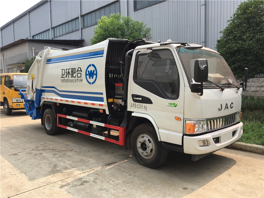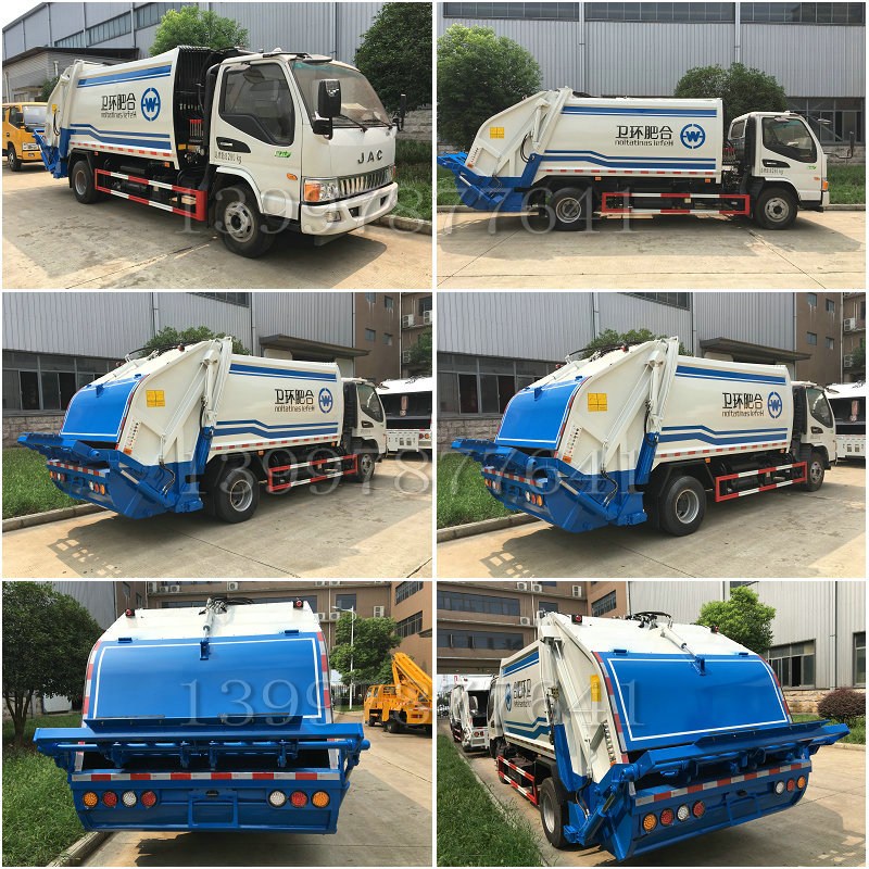 车辆配置:采用江淮底盘,3800mm轴距,可配玉柴150马力国五柴油发动机,7.50钢丝胎,原装空调,电动玻璃,自动调整臂,前大灯调节,abs;上装采用q235碳钢钢材制作,箱体曲面圆弧型,箱体容积8方,国内知名品牌液压系统,进口电控系统,尾部可选装翻桶机构,尾部夜间作业led照明灯,一键循环装填垃圾,驾驶室内带一键卸车控制系统,全车一人操作即可。