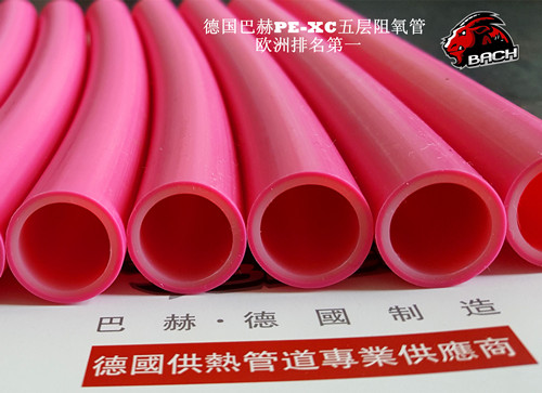 bach巴赫pe-xc管道采用电子辐射而非化学方式使聚乙烯产生交联。交联反应过程中管道微微旋转通过放射区后产生交联反应。x代表交联反应。