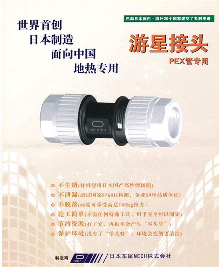 日本东尾株式会社生产的pex地暖管接头,我司是中国区总代理,直接日本厂家进口,诚招全国代理商加盟代理合作。