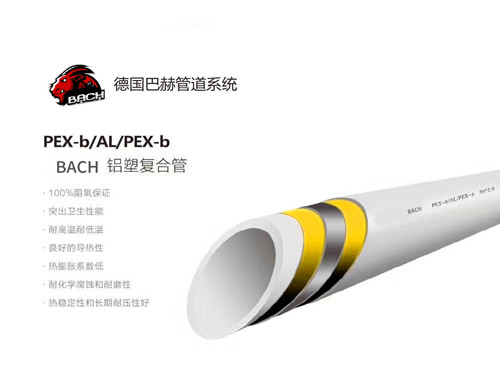 德国巴赫铝塑复合管由内外层为符合德国din16833标准的耐高温聚乙烯管与中间为连续对接焊的铝管组成,适用于住宅及商业管道,生活用于供水.地板采暖.散热器采暖。最大的长期运行参数不超过10公斤在95℃以下。